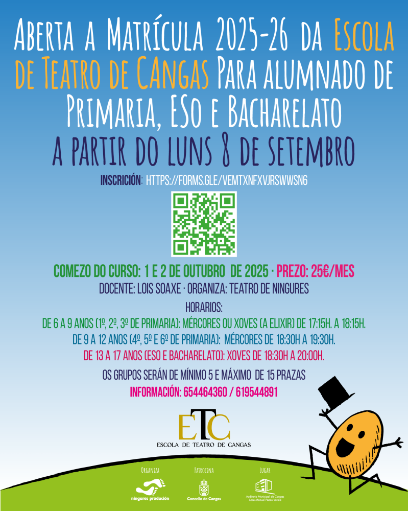 La Escuela de Teatro de Cangas (ETC), nace en 2008 y está gestionada por Teatro de Ningures.