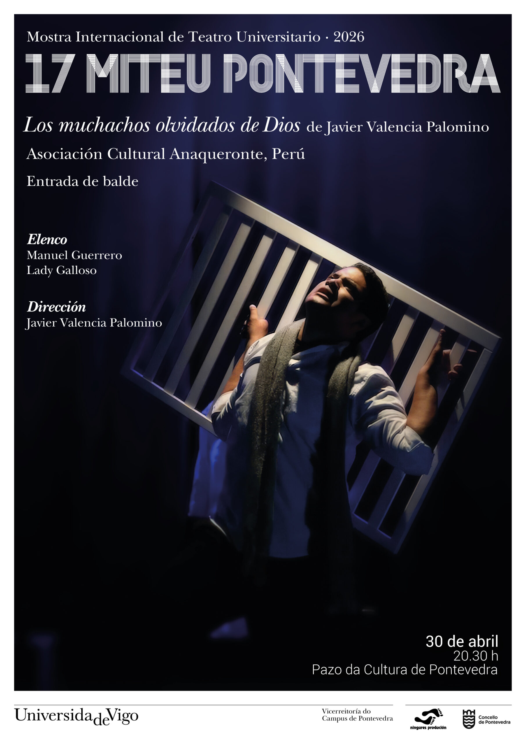 AULA DE TEATRO DO CAMPUS DE OURENSE DA UVIGO «MARICASTAÑA» OURENSE (GALICIA) AUTOR: dramaturxia de Fernando Dacosta inspirada en Rebelión na granxa, de George Orwell ELENCO Iria Losada, Diego Galdo, Vicki Reinoso, Paula Iglesias, Anabel, Miguel Solanas, Alba Gálvez, Óscar Castromán, Rubén Gómez, Carmen Blanco e Silvia Cortón Iluminación, atrezzo e técnicos en xira: José […]